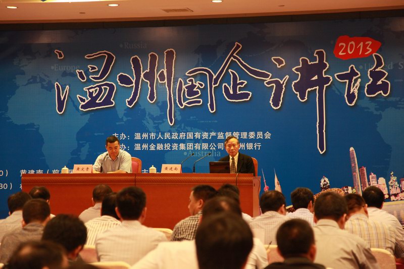 8月5日,受市国有资产监督管理委员会邀请,两位国际政经界颇具影响力的温籍人士黄建南、林建海在家乡开坛讲课,讲述全球经济动向,为温州经济、金融发展“把脉”。 此次国企讲坛由市国资委主办,市金融投资集团、温州银行协办。邀请的嘉宾为美国商务部前助理部长黄建南和国际货币基金组织(IMF)秘书长林建海。上午,黄建南先生从讲述了金融业如何与实体经济作更有效的配合,结合自身经验,浅谈了中美经贸关系,并对过去、未来作了回顾和期许。下午,林建海先生在宏观上剖析了全球经济面临的挑战和策略应对,从横向、纵向多方面进行了比较借鉴,各擅所长,各有独到之处。参加讲坛的有市国资委和各国资营运公司主要负责人。集团作为协办单位,组织40多人参加讲坛听课。