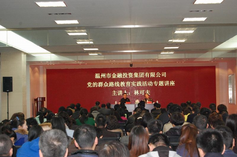 3月21日上午,集团在金改广场二楼举办党的群众路线教育实践活动专题讲座,特邀正泰集团党委书记、副总裁,温州市新经济组织和新社会组织党务工作者协会会长林可夫主讲,讲授学习实践党的群众路线的探索与思考。集团本级和全资公司全体职工,控股公司班子成员及参股公司主要负责人共150余人参加。集团党委副书记、总经理岑利主持会议。