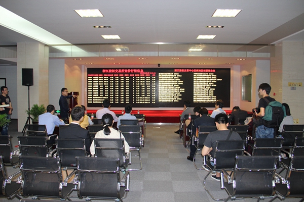 5月4日上午,“温州菁英青年家乡行”考察团一行抵达温州金融改革广场,先后参观集团旗下股权营运中心、金投担保有限公司、温金网等金融机构,集团副总徐武敦、集团团委有关负责人陪同考察。