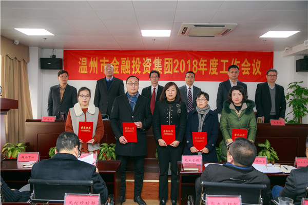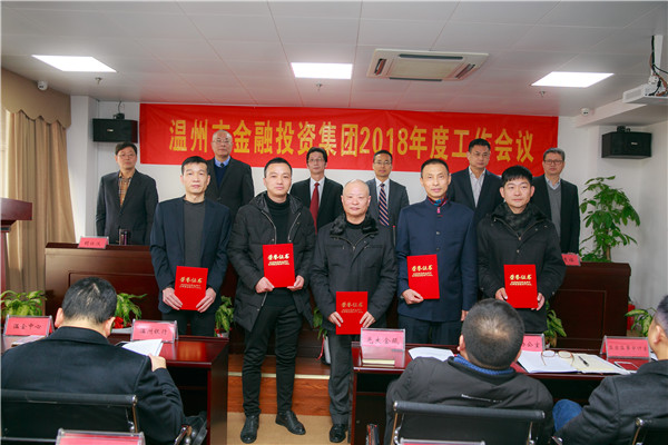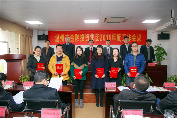会议由集团常务副总吕金记主持。集团本级全体员工、全资、控股及参股公司班子成员,优秀企业管理者、优秀员工和优秀党员参加会议,温州银行、光大金瓯资产管理公司、温州金融资产交易中心等参股单位代表受邀参加会议。会议表彰了2017年度先进集体、优秀企业管理者和优秀员工以及2017年度优秀共产党员。