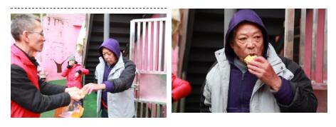 党员志愿者们为中心的残疾人喂食物,还为他们戴上保暖的毛帽。