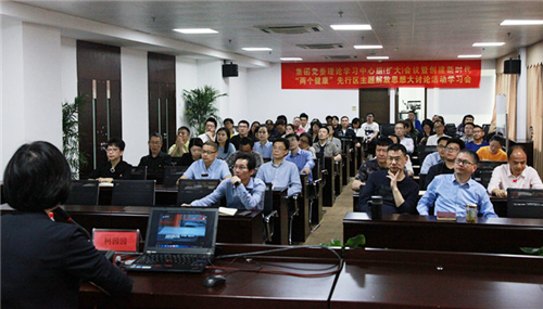 温州金投集团举行创建新时代“两个健康”先行区主题解放思想大讨论活动学习会,集团班子成员、本级全体员工、成员公司班子成员参加此次会议。