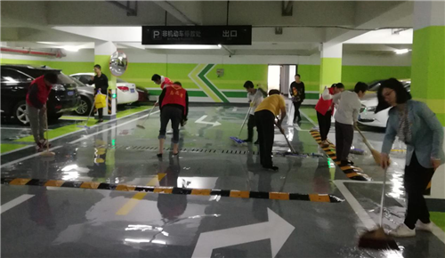 在义务劳动现场,公司全体党员干部齐心协力、相互配合,对地下车库地面、汽车过道以及车库周边进行了清理。经过近2个小时的清理,车库及周边环境焕然一新。充分发挥了支部党员的先锋模范作用。