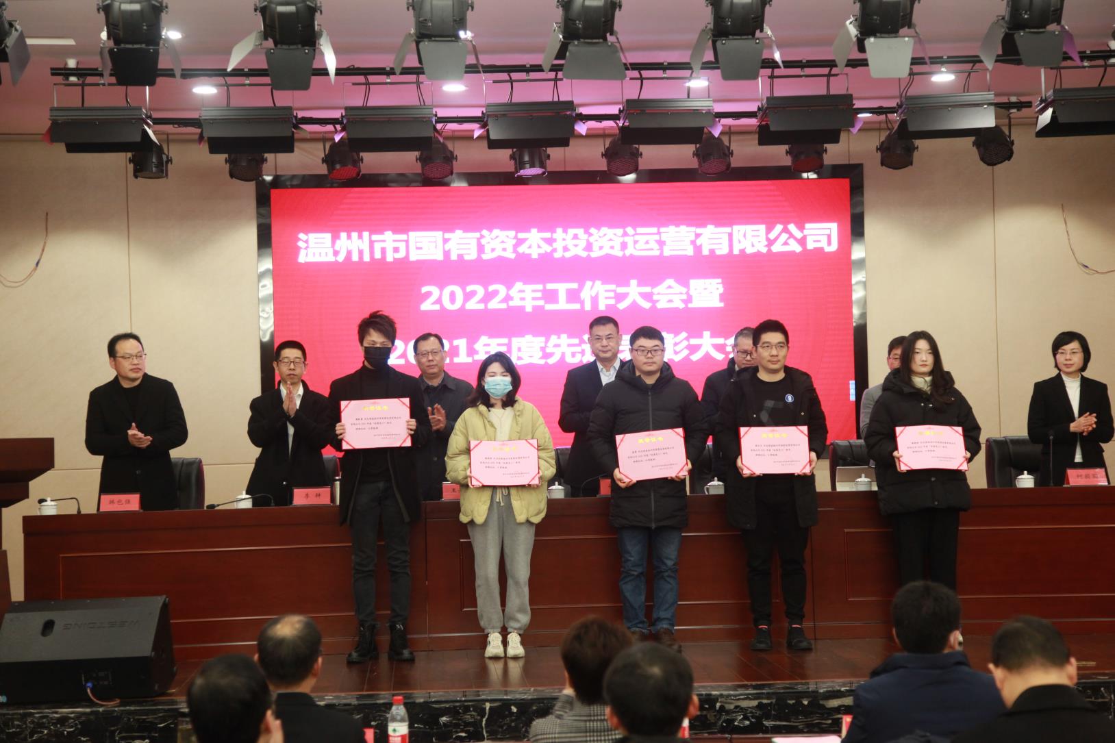 会议对2021年度优秀企业管理者和优秀员工进行了表彰。3位先进代表先后作表态发言,展现了公司干部职工面对时代之变,对标温州发展,勇做改革突破的引领者、实干争先的奋斗者、顶压前行的开路者。