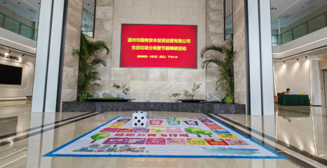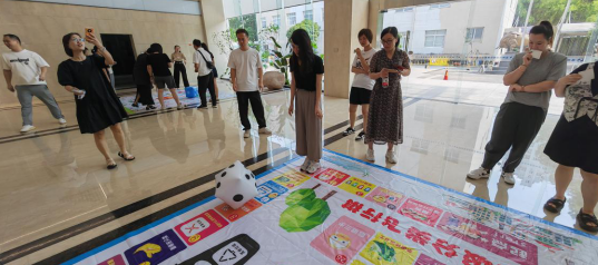 讲座结束后,在公司大厅设置了“垃圾分类单人飞行棋”、“垃圾分类双人pk赛”、“节能降碳知识竞答”、“趣味竞走垃圾分类”四个游戏打卡点,通过趣味游戏普及日常垃圾分类知识,倡导绿色环保理念。大家在游戏互动交流,学习垃圾分类知识,寓教于乐。
