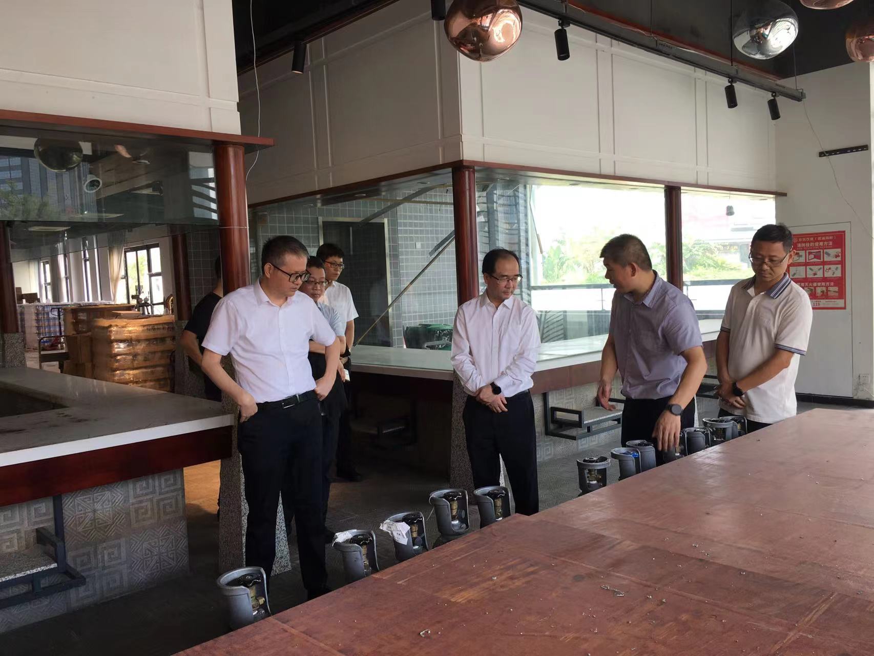 叶刚一行对公司重点租赁物业金融大厦,以及滨江大排档啤酒工坊,开展安全生产检查。重点检查地下室非机动车库电动自行车停放充电规范管理执行情况,招商重点单位消防安全责任制落实情况,以及啤酒工坊生产线卫生安全管理等情况,叮嘱进一步加强安全防范工作。