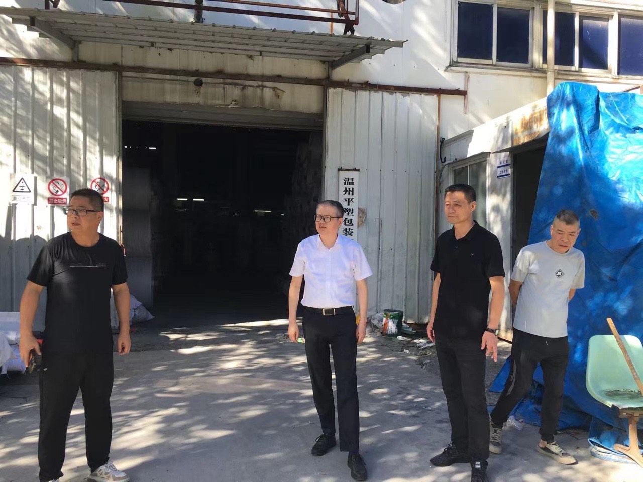 王秀福一行赴平阳厂区,对公共消防设施、电动车充电点、生产企业车间消防防护等情况进行检查,要求各承租单位进一步落实各项安全防范要求。