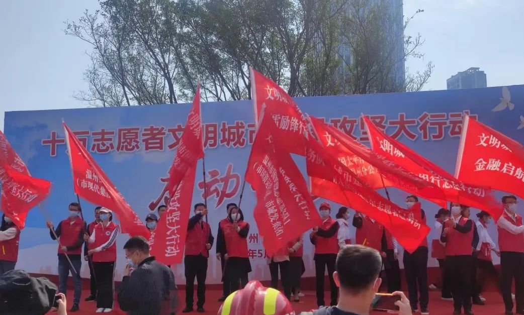 5月17日上午8:00许,我市十万志愿者文明城市建设攻坚大行动在世纪广场举行启动仪式。