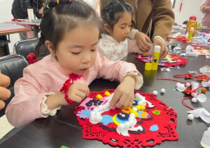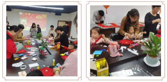 亲子间亲密合作,一步步按照顺序制作挂饰,不一会儿,一只只活泼可爱的“醒狮送福”就出现在孩子们面前,看着自己的杰作,孩子们兴奋不已。