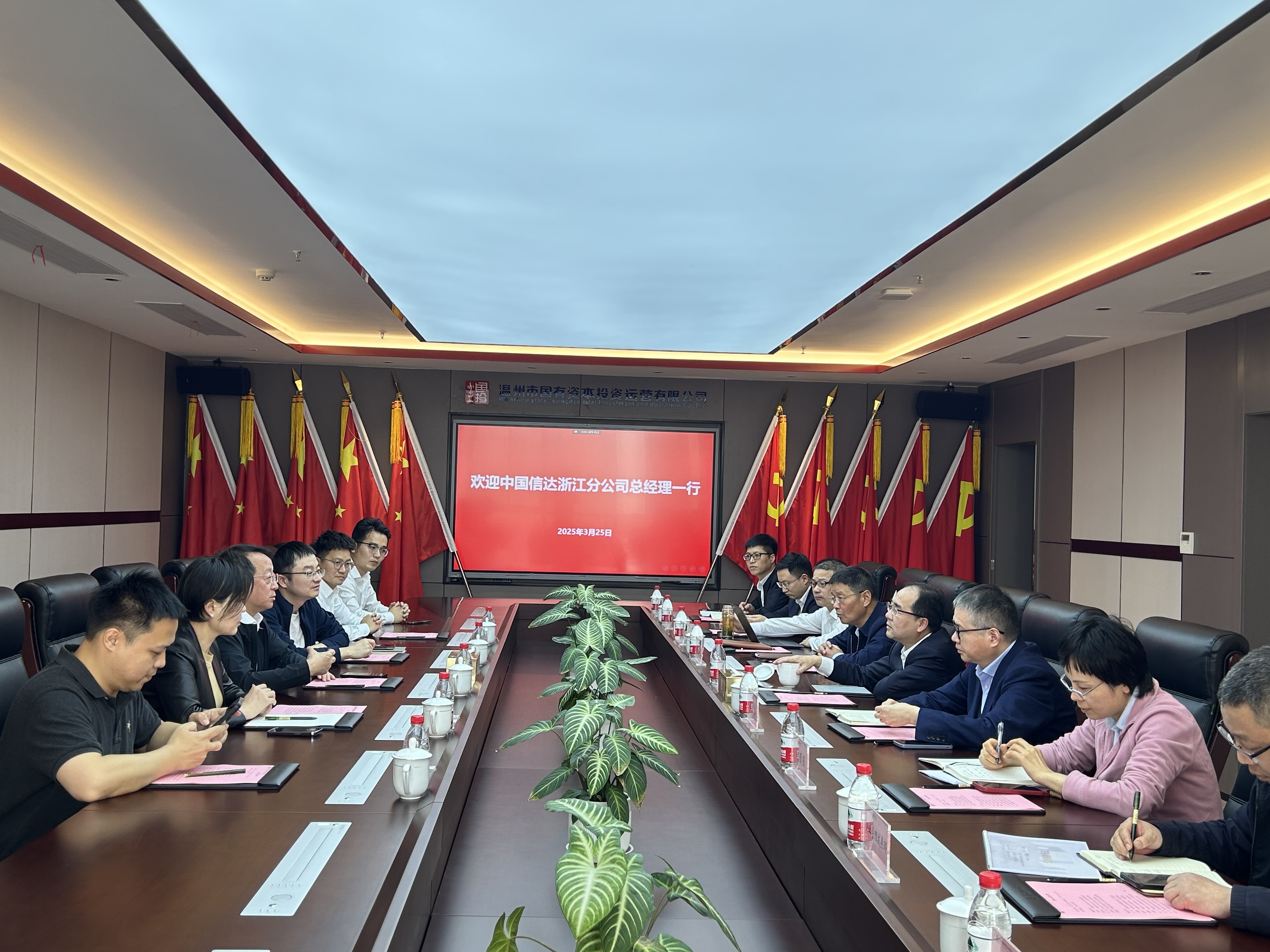 3月25日下午,中国信达浙江分公司党委书记、总经理王晓千带队,到访成人在线直播 展开合作交流。公司党委副书记、总经理叶刚,党委委员、副总经理王秀福、胡仕汉、柯园园等参加座谈。