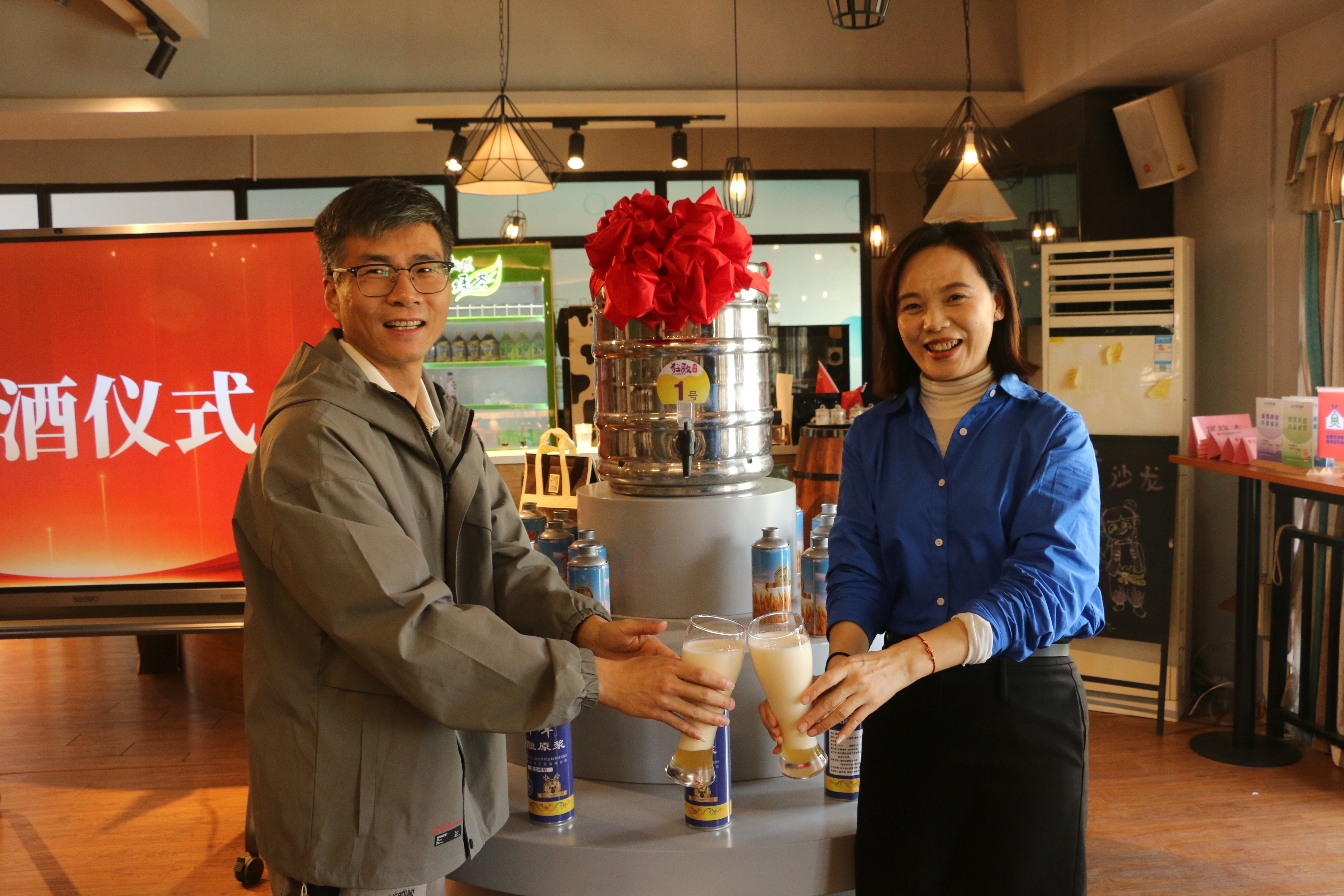 活动现场,校企代表携手开启首桶精酿啤酒,以传统仪式寓意合作“发酵启程”。学院首任产业教授团队同步亮相——温州科技职业学院为国投工贸两位资深工程师颁发“产业教授”聘书,企业方聘任学院教授担任“科技副总”,通过“双向聘任”机制深化产学研协同创新与成果转化。同时,校企联合研发的首款精酿啤酒“产教融合·麦香初酿”正式发布,与会嘉宾现场品鉴后,高度评价其独特风味与品质。该产品从原料配比到酿造工艺均融入学院师生创新成果,成为产学研协同的生动实践。