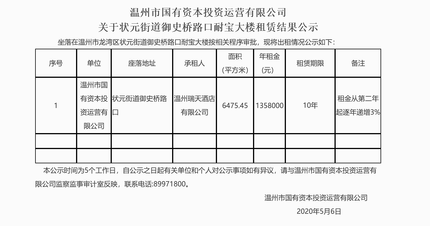 成人在线直播 关于 状元街道御史桥路口耐宝大楼租赁结果公示