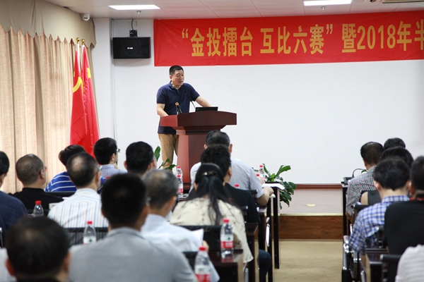 温州网讯8月23日下午,温州金投集团举行“金投擂台·互比六赛”活动。金投集团旗下金投担保、产业基金、联合产权交易中心、财开公司、国投建设及制造类企业在现场汇报半年来业绩,按照“赛项目、赛进度、赛落实、赛创新、赛质量、赛担当”的六赛要求,“晒”出半年度成绩,并由集团分管领导予以点评,最后由现场参会的60余名集团及成员公司中层以上干部打出考核分数。
